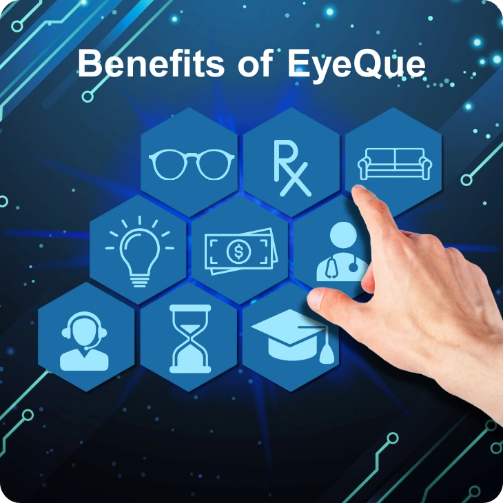"EyeQue’s hand-held, at-home eye testing tools make refraction and screening tests for visual acuity, color and contrast accessible to everyone, anywhere. The FDA Class 1-registered EyeQue devices... revolutionizing the eyecare industry."